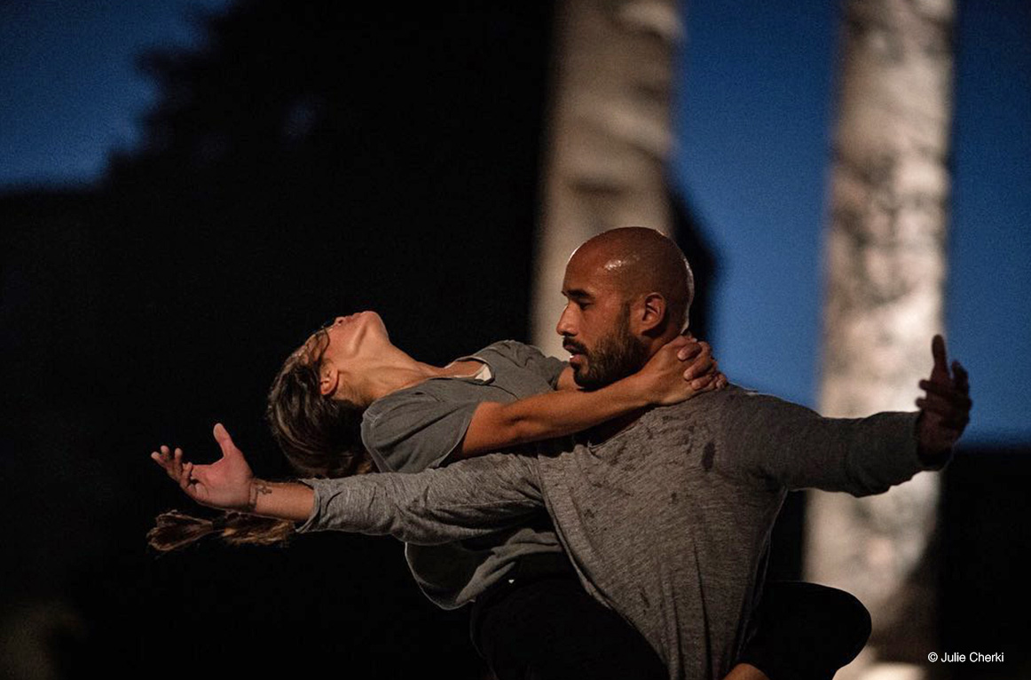 Fárisa is a duet that was created for outdoor spaces in the context of the Pilgrims project. The work follows two characters’ need for genuine connection and contact even as they remain in close proximity. It is inspired by the notion of pilgrimage as a simulation of the human journey through life, of our relationship with animals and the natural world. How can two separate trajectories meet and travel together? How do we build relationships on shared connection and mutual support? How can the established hierarchy of humans and animals be redefined?