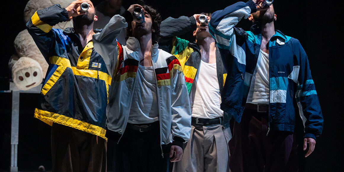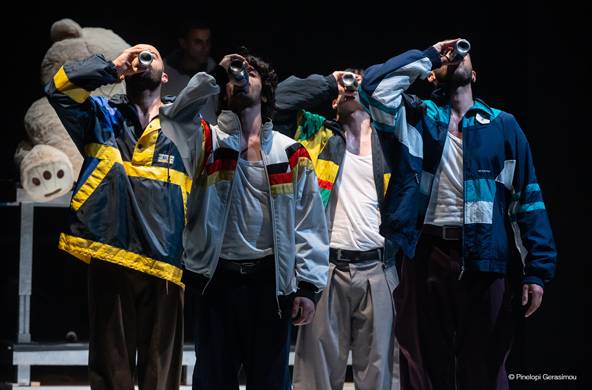 Τέσσερις άνδρες — νέοι, ωραίοι και δυνατοί, βίαιοι, ανώριμοι και αφελείς, παγιδευμένοι μέσα στην ταυτότητα που τους έχει δοθεί — μπαίνουν σε μια παλμική τροχιά που τους οδηγεί σε αχαρτογράφητα νερά. Από τα decks του DJ, ένας πέμπτος άνδρας ορίζει τον ρυθμό, ενώ ταυτόχρονα παρασύρεται από τον δικό τους.