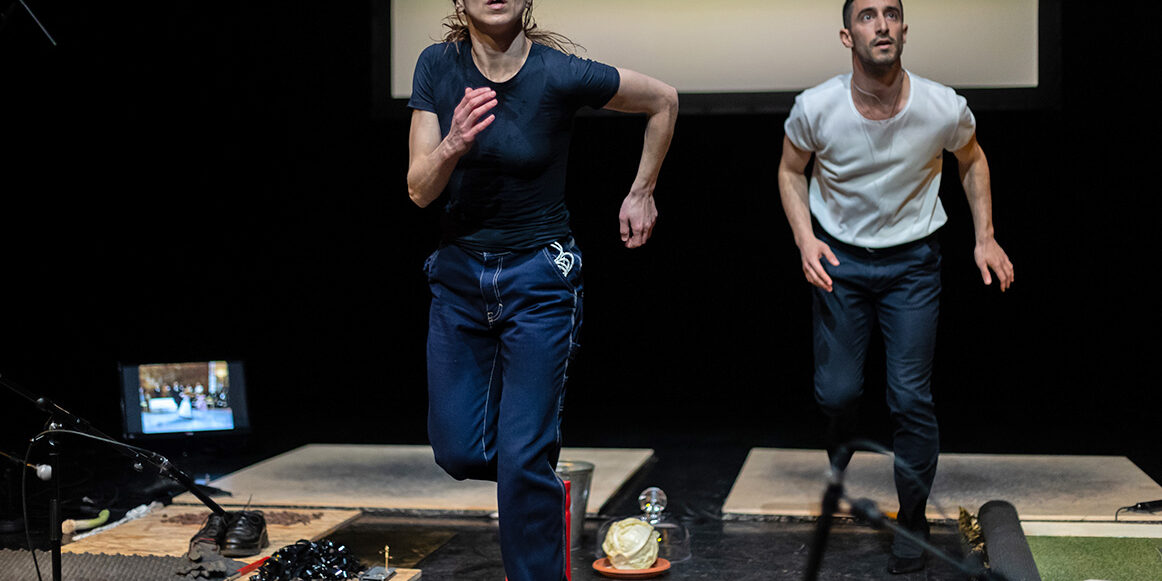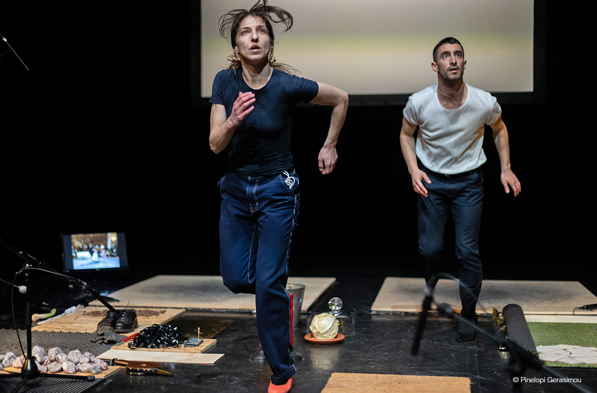 Δύο ερμηνευτές συνδιαλέγονται με εικόνες ασύνδετες μεταξύ τους και επιχειρούν να προσδώσουν τη δική τους καταγραφή στον χώρο. Το σώμα και η (μικρο)κίνηση συνυπάρχουν με παράδοξα αντικείμενα και υλικά, λειτουργώντας ως μέσα παραγωγής ήχου. Εντάσεις, εκρήξεις, παύσεις, επαναλήψεις και παραμορφώσεις του υλικού ενισχύουν την ηχητική εμπειρία.